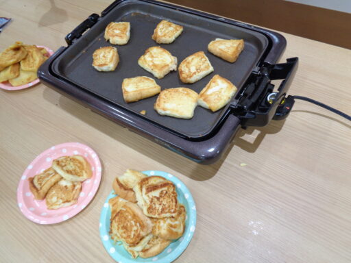 管理栄養士と一緒にフレンチトーストを準備します(あ~いい匂い)