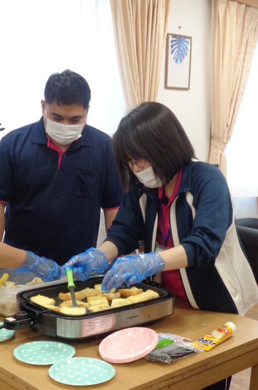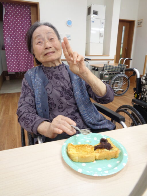 多床室ではフレンチトーストを手作りして召し上がっていただきました🎵
