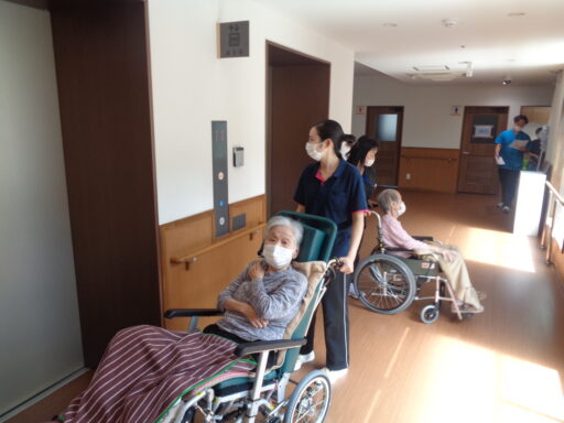 車いすでお散歩に励んでいる入居者様も普段から散歩に利用されています。