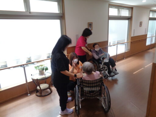 皆さんとても喜ばれており、通りすがる職員との会話も会話が弾み