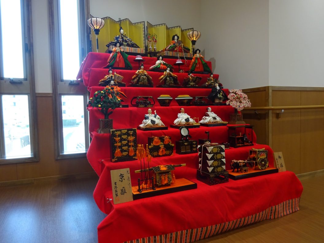 ご利用者様のご家族様より寄贈していただきましたひな人形を2階ラウンジに飾りました。