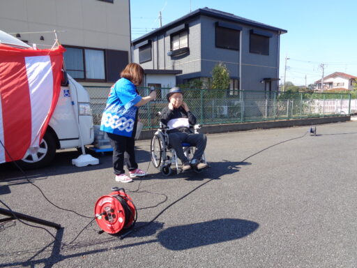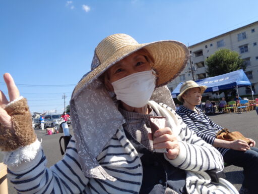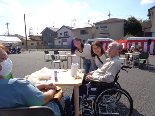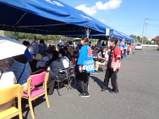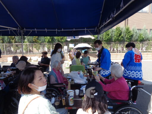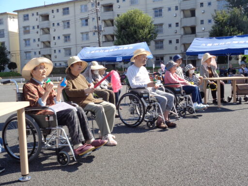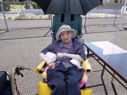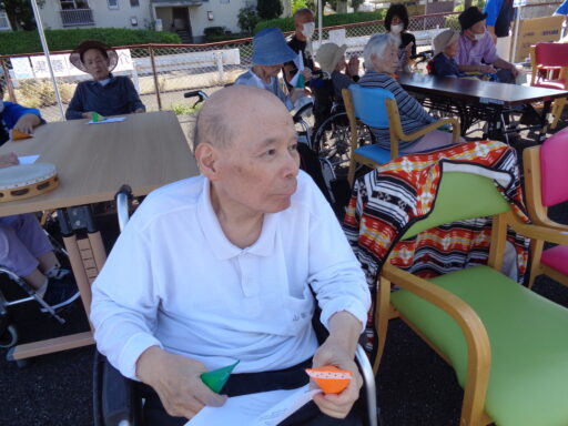 日差しが強い為、入居者様は帽子を被り、テント内からの参加となりました。