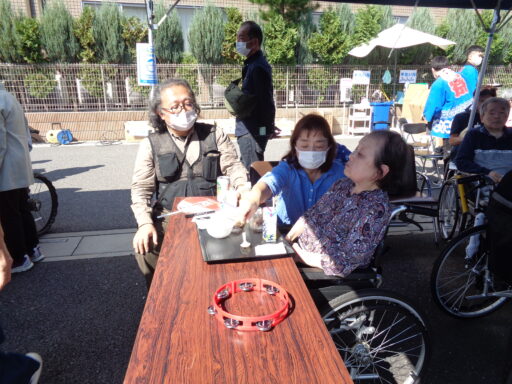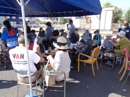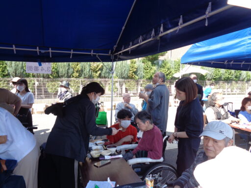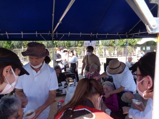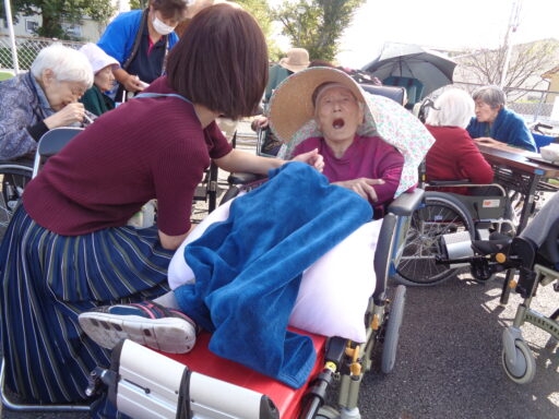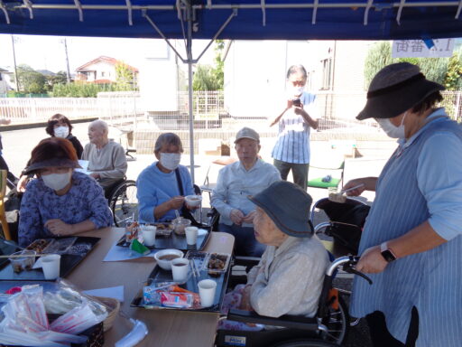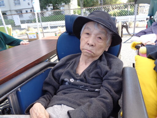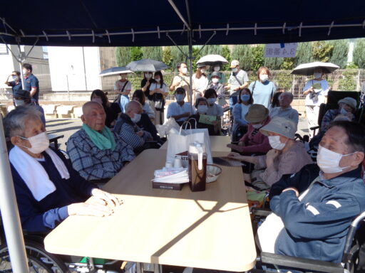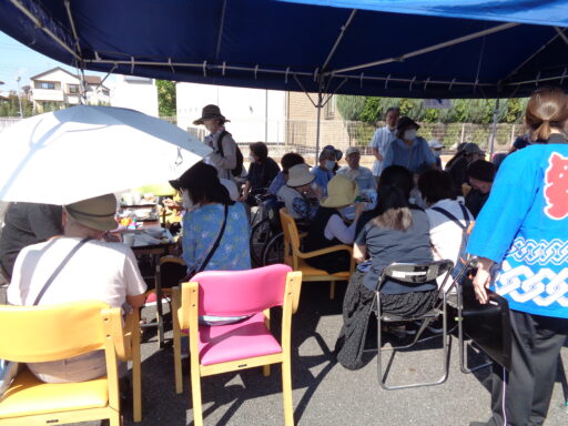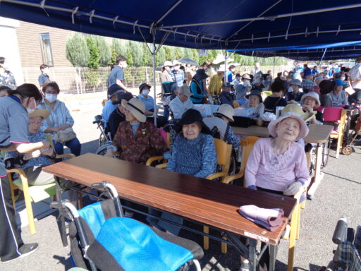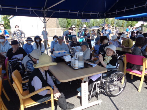 日差しが強い為、入居者様は帽子を被り、テント内からの参加となりました。