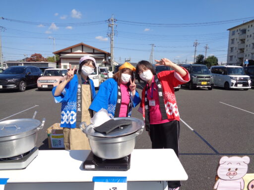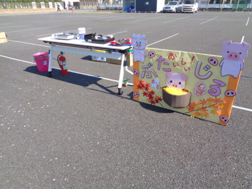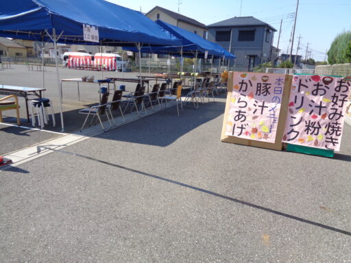 消火器を準備しての豚汁ブース