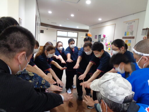機能訓練指導員の挨拶で円陣を組みました!