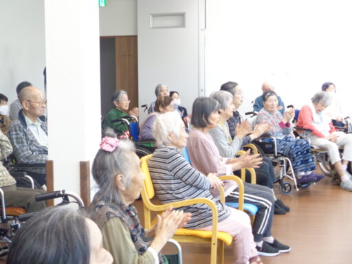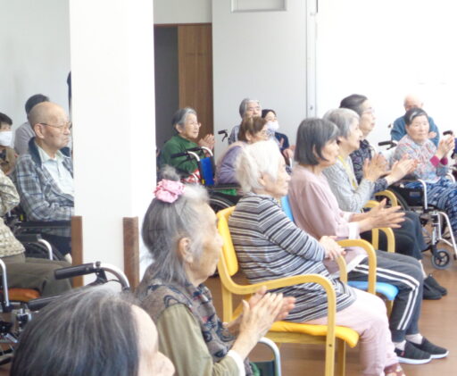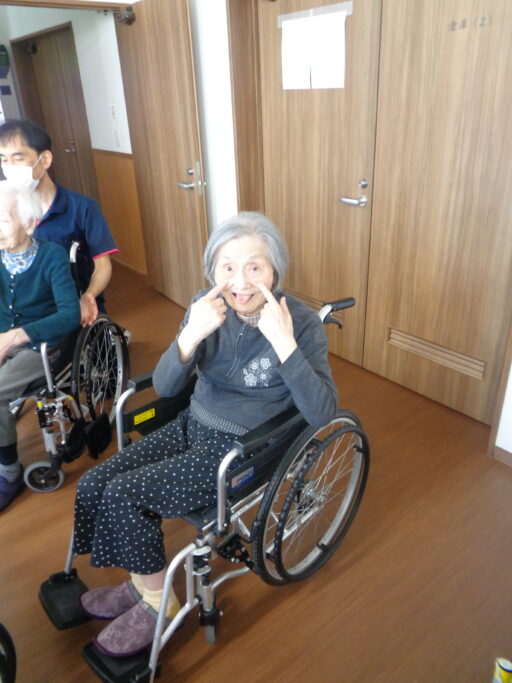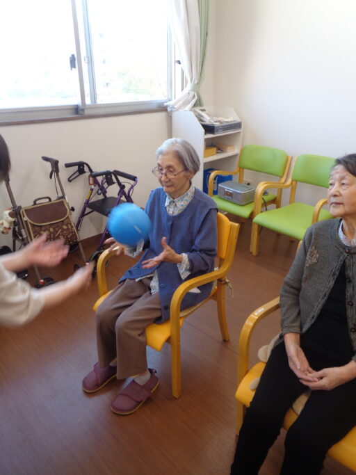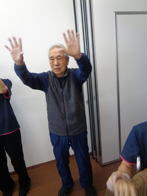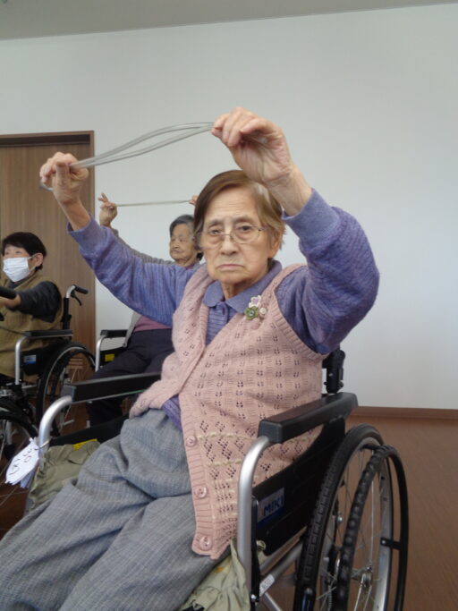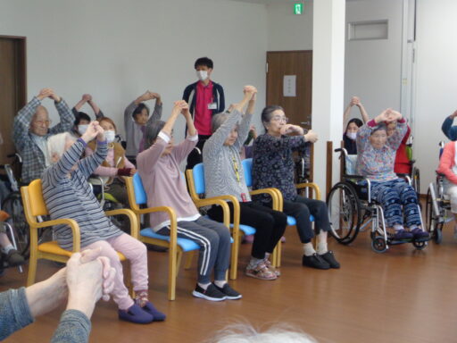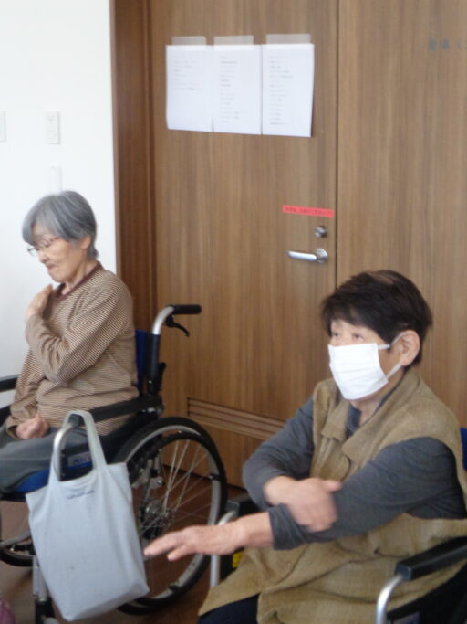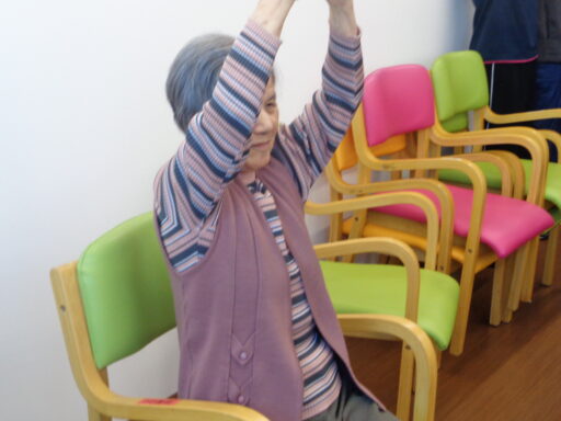 腕をのばしてみたり、座ってできる体操は身体が伸びて気持ち良いですね!