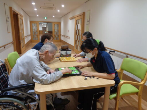 囲碁クラブ活動 2024/07/28 今回は参加者が少なかったのですが、 オセロと将棋をしました。 入居者様も職員も脳を使います。 対局経験を積むことで左脳が鍛えられるといわれており、 物忘れ・注意力低下を防ぐ効果があるようです。 オセロは女性職員と一緒です(^^♪ 記憶力・運動能力を使うとされており、 大脳が鍛えられるといわれています。 ブログ一覧へ