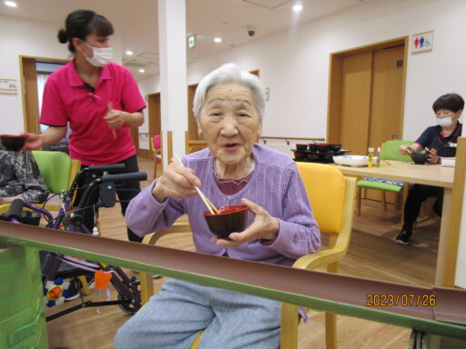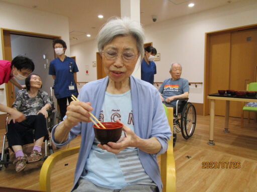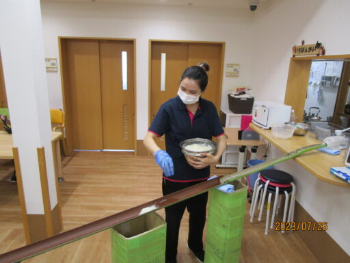 ご利用者様にはいつも以上に水分摂取をしていただくようお手伝いさせていただいています。