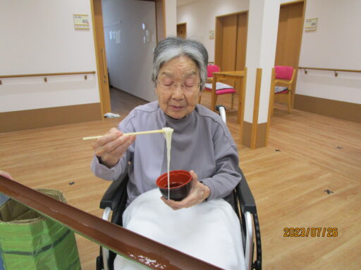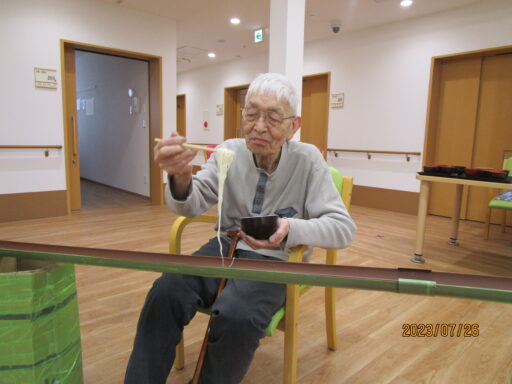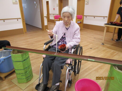 夏の風物詩「流しそうめん」を行いました。