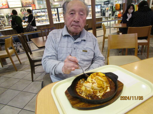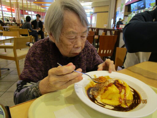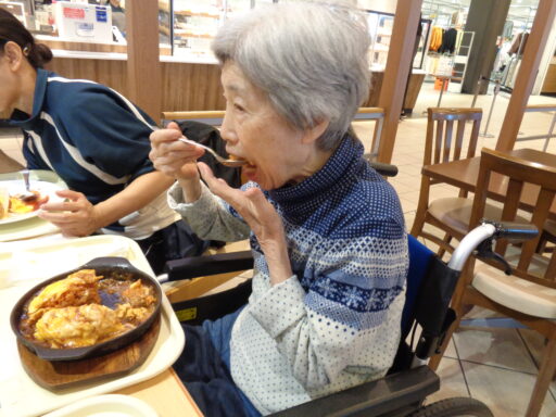 ステーキのお肉は喉につかえないように小さくさせていただきました。