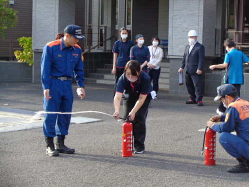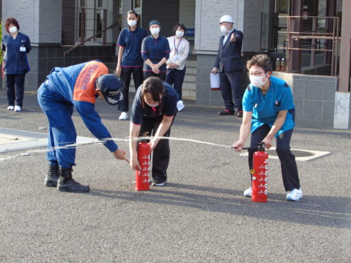 防火訓練10/28 2025/10/28 火災を想定した防火訓練を行いました 消防署の方々も来てくださり、消火器の使い方、実際家事になったときの入居者様の誘導の仕方など、 いつ火災や震災が発生するかわからない為、 就寝されている方を起こし車イスで避難するところからの訓練です。 入居者様全員に参加いただき、スムーズな誘導ができました。 ブログ一覧へ