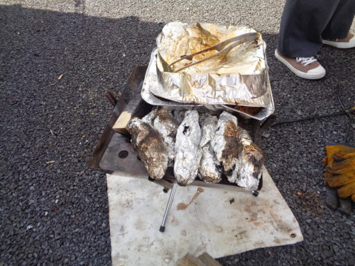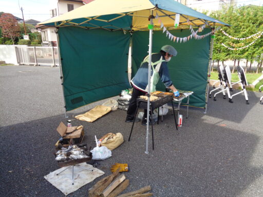 BBQ番長がおいしく焼いています!(朝早くから火起こしお疲れさまです✨)